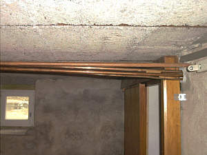Die neuen Heizungsrohrleitungen, jetzt entlang der Wand verlegt