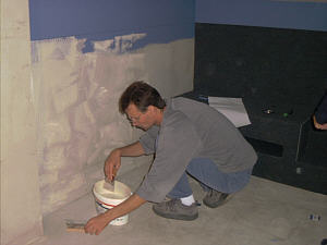 Die Wände werden nur bis zur Hälfte gestrichen, unterhalb sollen die Wandflächen mit Teppichboden verkleidet werden
