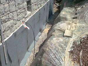 Verputzte und vorgrundierte Kelleraussenwand